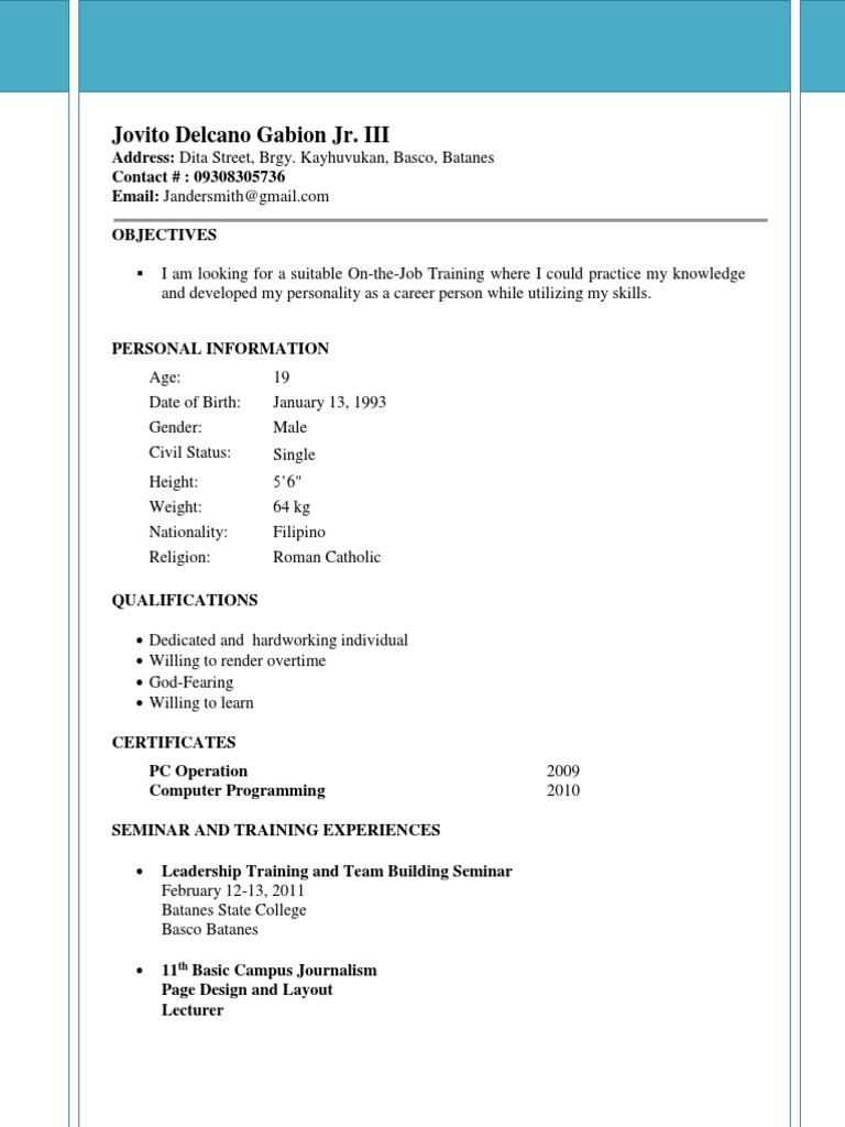 Resume For Ojt from image.slidesharecdn.com I am currently a student at the university of maryland university college (umuc) studying. Introduction of yourself as a hope college student with a ______ major . As a highly inspired and hard working individual who is passionate to learn new technologies, i am keen to bring strong knowledge of software . I consider such applied responsibility to be among the most . Get inspired by this cover letter sample for accounting interns to learn . Abad acting chairperson, ite department sir: Applying for on the job training in your prestigious institution. These work functions may be offered by the academic institution where the student is currently enrolled .
